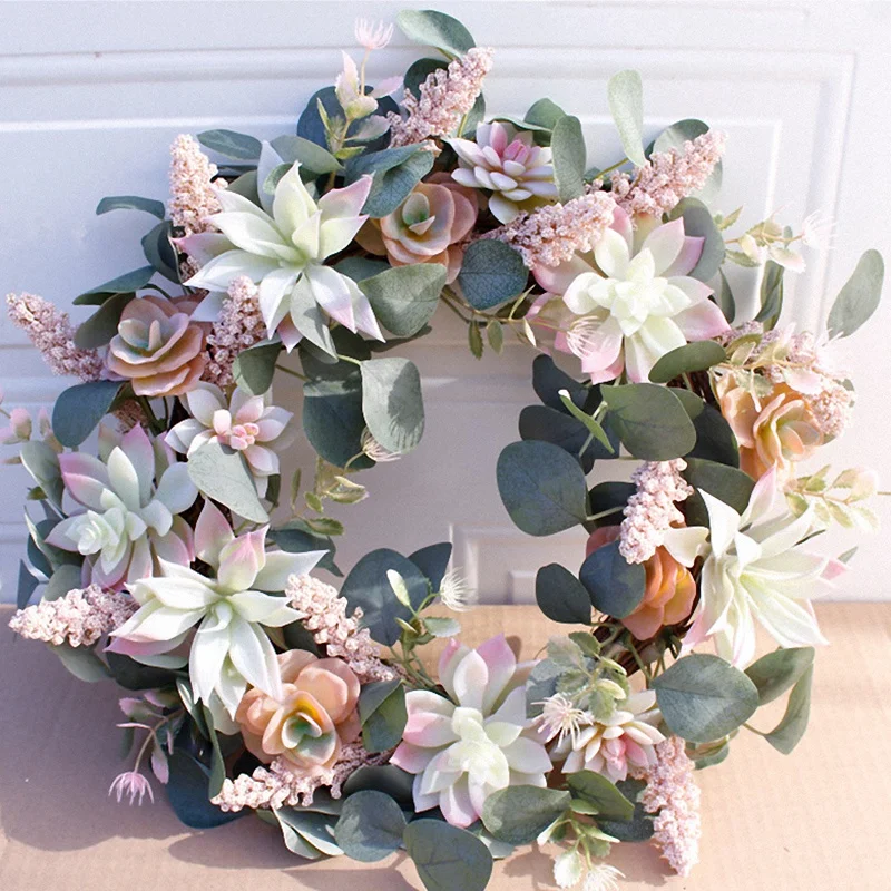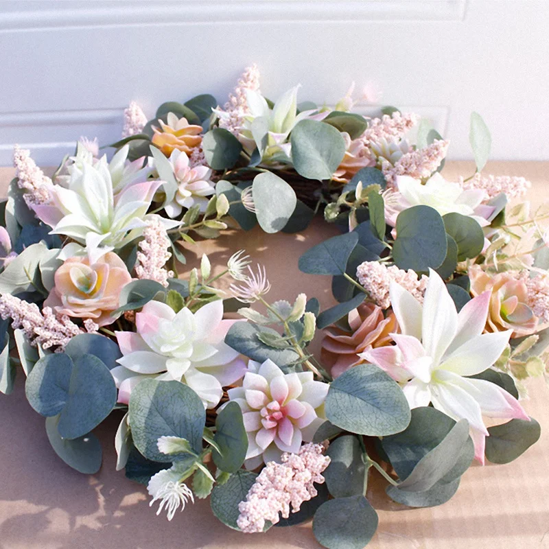 Best Seller Artificial Succulent Flower Wreath Garden Hanging Wreath for Home Wall Front Door Wedding Decor